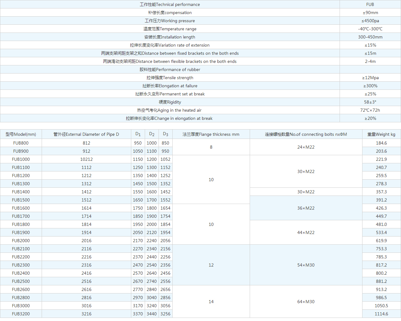| FUB2100 | 2116 | 2270 | 2340 | 2156 | 12 | 54×M30 | 753.3 |