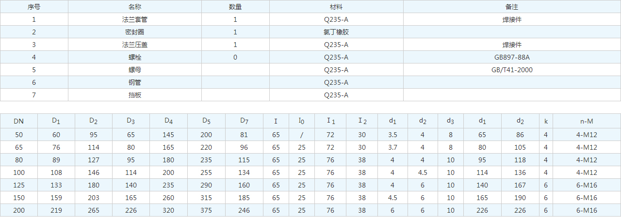 | 1 | 法蘭套管 | 1 | Q235-A | 焊接件 |
