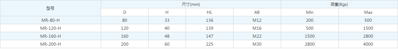 規(guī)格                  橡膠直徑 D(mm)                橡膠高度 H(mm)              螺紋粗細(xì)×螺紋長度